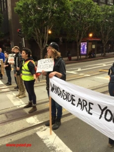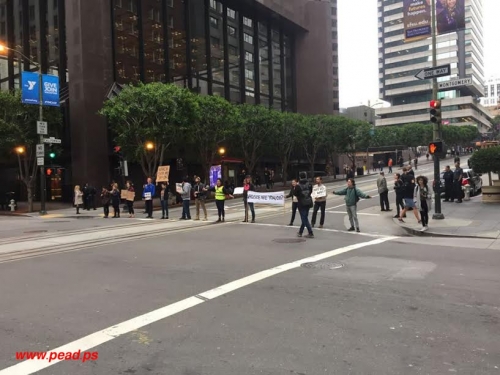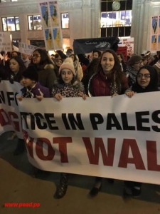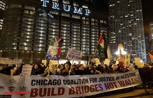 وخلال المظاهرات، التي نُظمت تحت شعار " أموال الضرائب للتعليم وليس لبناء جدران الفصل العنصري والتطرف في فلسطين والمكسيك"، حمل المشاركون الأعلام الفلسطينية واليافطات الكبيرة وبلغات متعددة تدعو لوقف اضطهاد الشعب الفلسطيني.