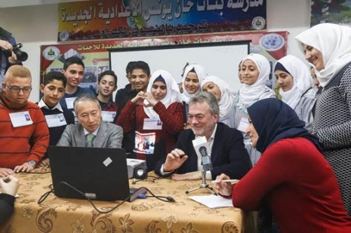 كما نظمت محادثة مرئية عبر تقنية سكايب بين طلاب من مدارس الأونروا في خانيونس بما فيهم الذين سافروا إلى اليابان في 2015 مع أعضاء من البرلمان الياباني ومن مجلس المستشارين الياباني وطلاب يابانيين حيث تبادلا فيها تجاربهم وحياتهم اليومية وآمالهم وخططهم المستقبلية.