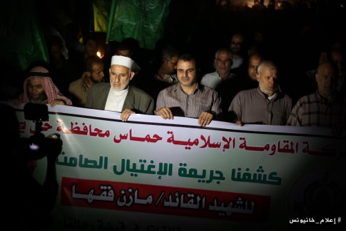 جاء ذلك خلال مسيرات جماهيرية انطلقت من كافة أنحاء محافظة خان يونس دعت لها حركة حماس ابتهاجا بإعلان رئيس المكتب السياسي للحركة إسماعيل هنية مساء اليوم عن اعتقال الأجهزة الأمنية لقتلة الشهيد مازن فقها.