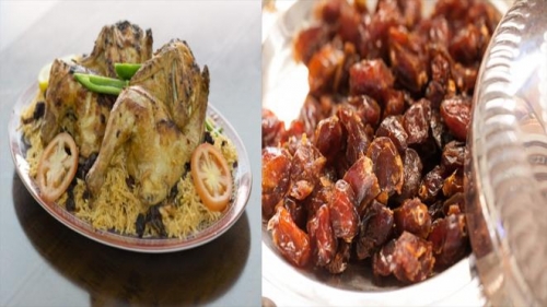 رغم أن التمر حاضر دائماً على موائد الخليجيين، لكن يتم التركيز عليه في رمضان، حيث تحرص الغالبية على بدء الإفطار بحبة تمر أو أكثر، بالإضافة إلى طبق الكبسة الشهير في المنطقة، والمحضر من الأرز والدجاج المشوي.