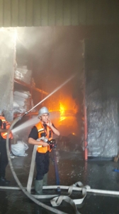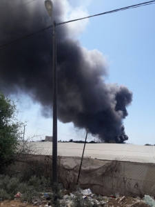(صور) حريق ضخم بمصنع للبلاستيك وسط قطاع غزة