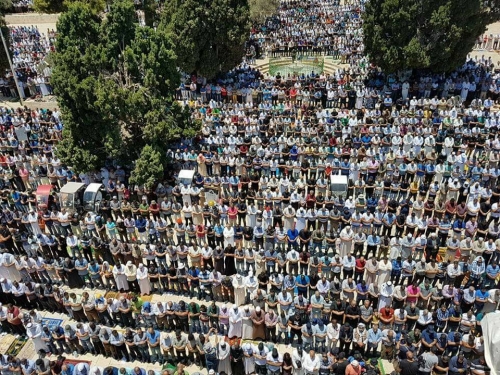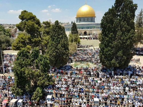 وكان عشرات الآلاف من المصلين بدأوا بالزحف إلى المسجد الأقصى من مختلف أنحاء الضفة الغربية والقدس وضواحيها وأراضي الـ48 منذ فجر اليوم، لأداء صلاة الجمعة الأخيرة من شهر رمضان.