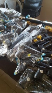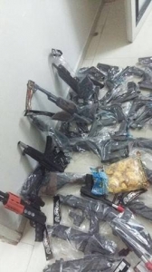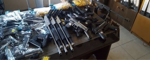 رام الله / سوا / ضبطت طواقم الضابطة الجمركية اليوم في محافظتي اريحا و بيت لحم كمية من البواريد والمسدسات البلاستيكية والخرز الممنوعه من التداول .