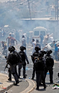وأصيب ستة مواطنين على الأقل بجروح متفاوتة بالإضافة إلى العشرات بحالات اختناق في بيت لحم خلال قمع قوات الاحتلال لمسيرة خرجت نصرة للأقصى في المدخل الشمالي لمدينة بيت لحم.