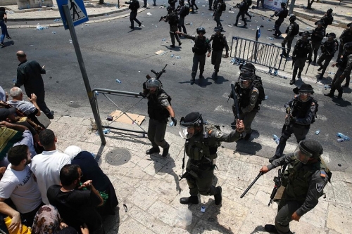 وقال شهود عيان إن قوات الاحتلال هاجمت المصلين قرب حاجز قلنديا مطلقة الرصاص المعدني المغلف بالمطاط وقنابل الصوت والغاز المسيل للدموع ما أدى إلى وقوع 10 إصابات.