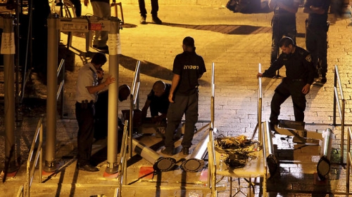 القدس / سوا / صادق المجلس الوزاري المصغر للشؤون السياسية والأمنية "الكابينيت" توصيات أجهزة الأمن بإزالة البوابات الإلكترونية التي نصبت على أبواب الأقصى واستبدالها بكاميرات ذكية والتي شرع بنصبها عند باب الأسباط فجر اليوم الثلاثاء.