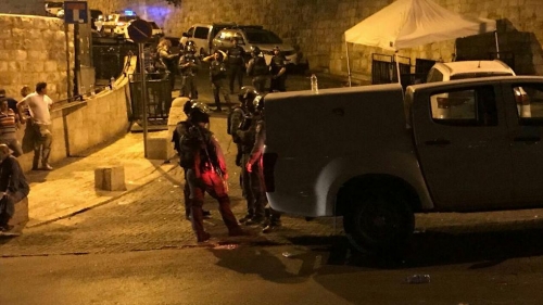 وقمعت شرطة الاحتلال المقدسيين توافدوا إلى باب الأسباط، ردا على وصول جرافات والشاحنات إلى المكان، محملة بمعدات حفر وبناء.
