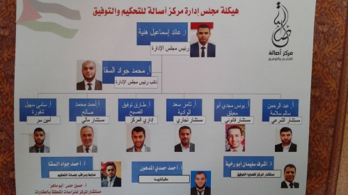 الجدير ذكره أن للمركز مجلس إدارة معتمد وعدة مستشارون متخصصون بكل المجالات، وقد تم إعداد قاعات متخصصة للتحكيم بالمبني المركزي له في مدينة غزة، شارع عمر المختار ، الميناء برج الغفري.