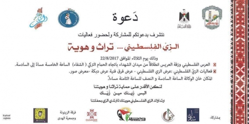 ننوي عقد فعليات الزي التراثي الفلسطيني لهذا العام وفق الجدول التالي: