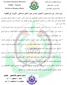 وجاء في بيان الدائرة الذي أصدرته اليوم الأحد (20-8): "إن دائرة شئون اللاجئين في حركة حماس تنظر بعين الريبة والشك للأسباب التي ذكرتها الأونروا لإغلاقها المستشفى؛ إذ لم يغلق أي مستشفى أقسامه لإجراء تحقيقات، فالتحقيقات تتم خلال العمل".