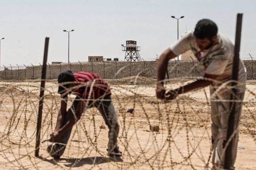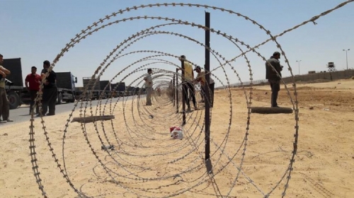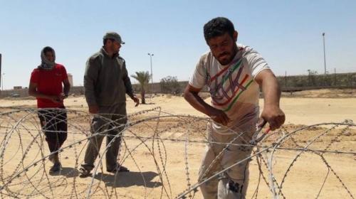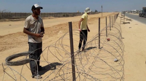 ويواصل عشرات العمال المدنيين منذ عدة أيام، تثبيت السياج الشائك وإنجازهم عدة كيلو مترات منه، بدءً من محيط معبر كرم أبو سالم، جنوب شرق رفح.