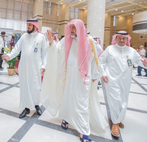 وتفقد آل الشيخ الفنادق المعتمدة لحجاج فلسطين ومصر بمكة المكرمة، وتجول في المعرض المقام في بهو كل فندق، واطلع على العديد من المستلزمات الشخصية المقدمة من الأمانة العامة في البرنامج للضيوف، واسمتع إلى شرح موجز عن الخدمات، وآليه استقبال وتسكين الحجاج في غرفهم بالفندق.