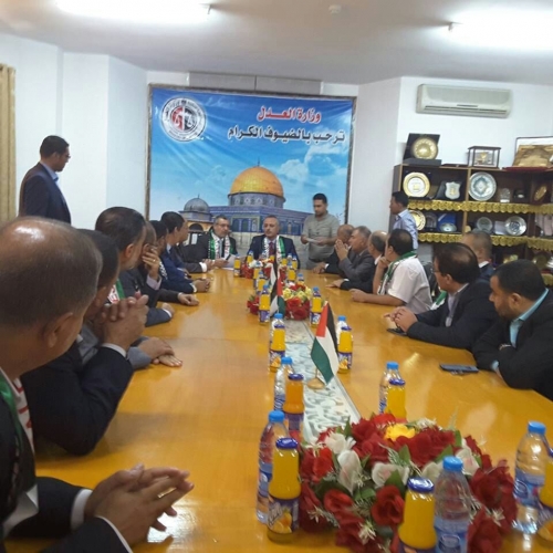 وزير العدل المستشار علي أبو دياك يلتقي وكيل الوزارة وموظفوها بغزة (الصورة في الأعلى)