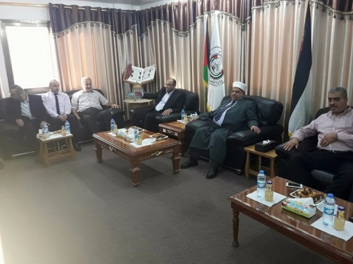 وزير الأوقاف والشؤون الدينية الوزير يوسف إدعيس يصل لمقر الوزارة بغزة ويجتمع مع المسؤولين فيها أمس (الصورة في الأعلى)