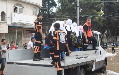وذكرت مديرية الدفاع المدني أن طواقمها عملت منذ صباح أمس الاثنين على تأمين نقل طلبة المدارس " قرب مدرسة الحرية" وسط حي الزيتون، وذلك بالتعاون مع أطقم من بلدية غزة نظراً لغرق الشوارع بمياه الأمطار.