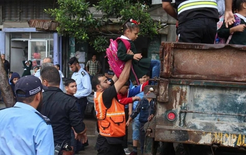 بالصور.. شاهد كيف أمّن الدفاع المدني نقل طلبة المدارس بغزة أمس