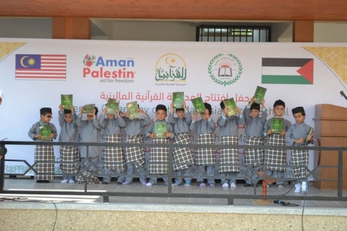 غزة / سوا / شاركت مديرية التربية والتعليم بالوسطى بافتتاح المدرسة القرآنية الماليزية بالنصيرات التابعة لدار القران الكريم والسنة بتمويل من مؤسسة أمان فلسطين ماليزيا بحضور أعضاء المجلس التشريعي د. عبد الرحمن الجمل وهدى نعيم ومدير عام التعليم العام بوزارة التربية والتعليم د. محمد صيام ومدير التربية والتعليم بالوسطى علي أبو حسب الله ورئيس قسم التعليم العام محمود بخيت وممثل مؤسسة أمان فلسطين ماليزيا المهندس عمر صيام وطلبة المدرسة وأولياء الأمور.