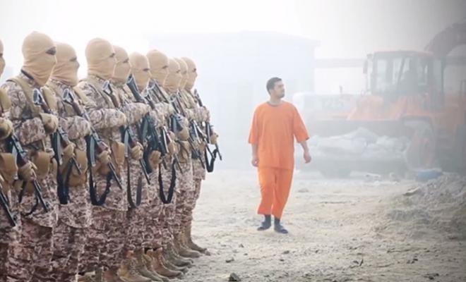 الطيار الكساسبة في إحدى اللقطات التي يقف فيها، وخلفه صف من جنود الدولة، خرج من فمه بخار كثيف، وهو ما لا يمكن أن يحصل إلا في ظل درجات حرارة متدنية لم تكن في الأيام الأولى لأسره.