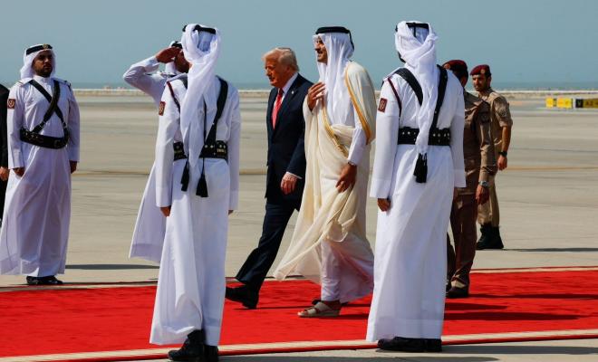 وتوجه ترامب إلى الدوحة بعد مشاركته بالقمة الخليجية الأميركية في الرياض، حيث ألقى كلمة قال فيها إن "الشرق الأوسط يتمتع بطرق حيوية وإستراتيجية في قلب العالم"، مؤكدا التطلع للعمل مع دول المنطقة.
