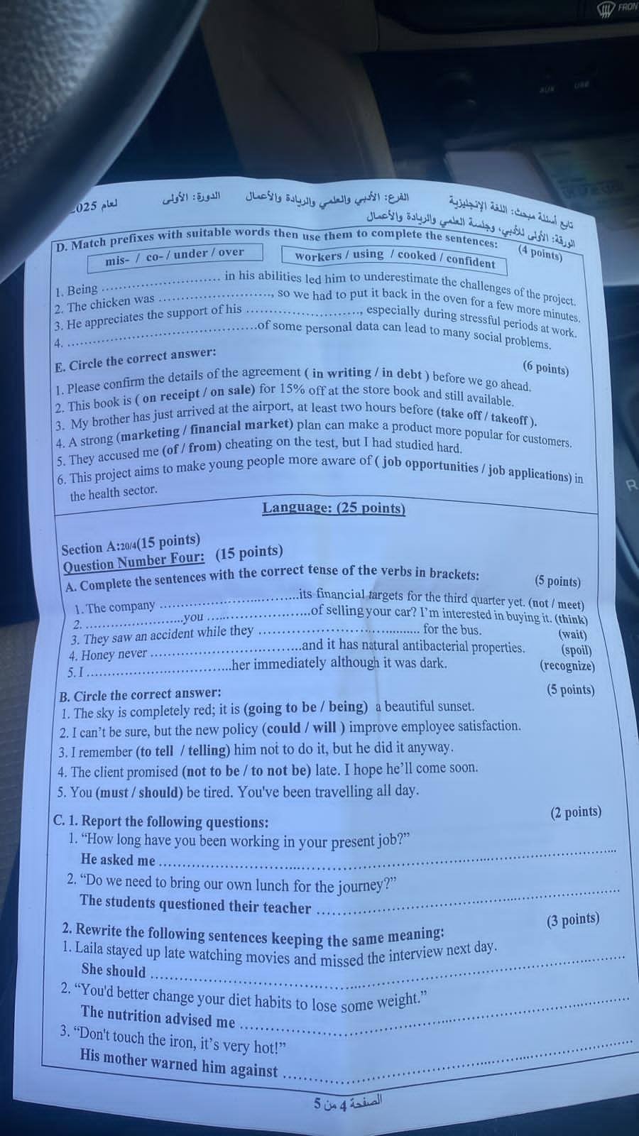 حل إجابات امتحان اللغة الإنجليزية 2025 في فلسطين