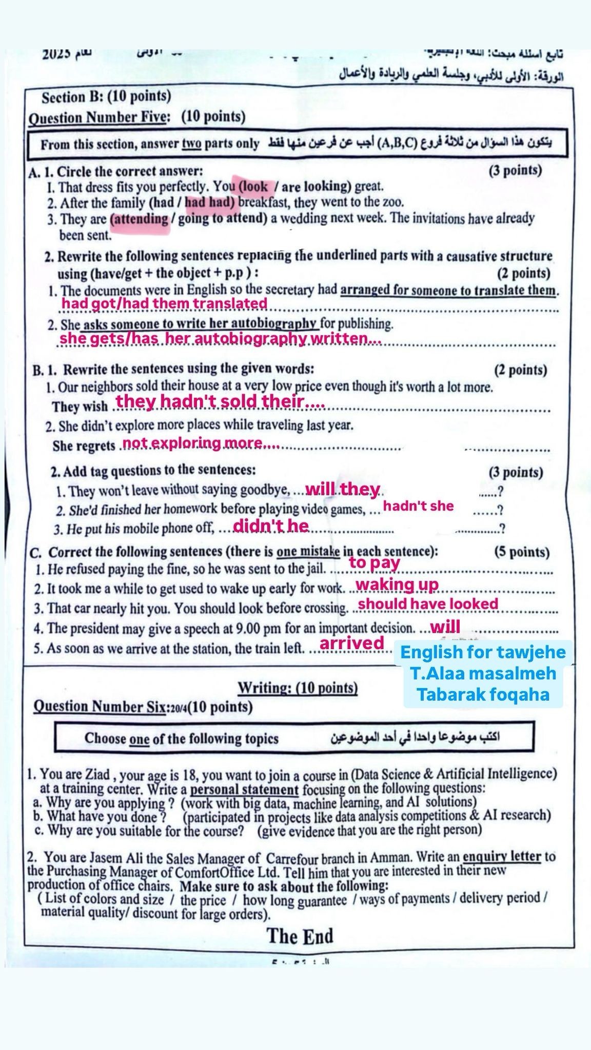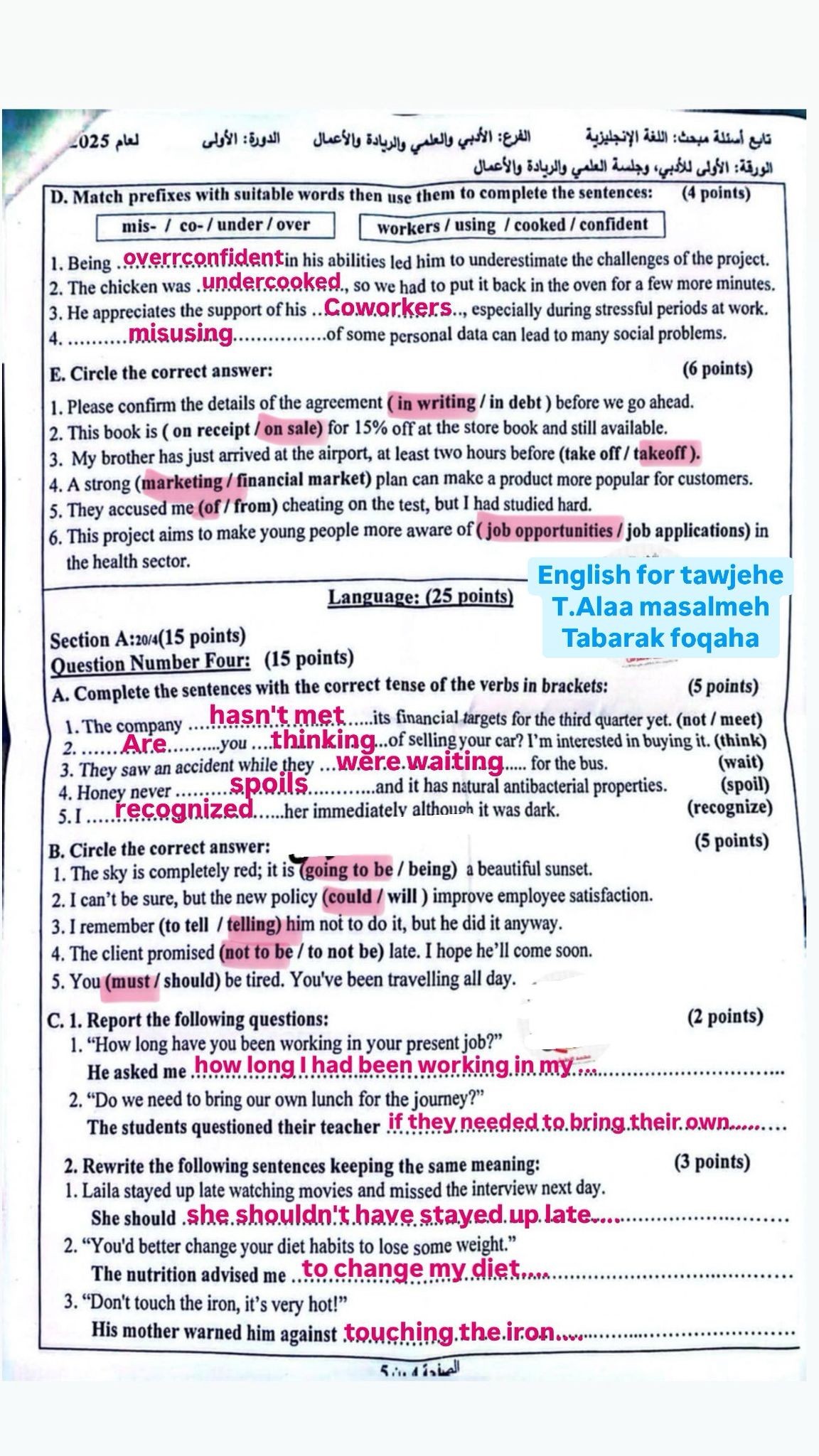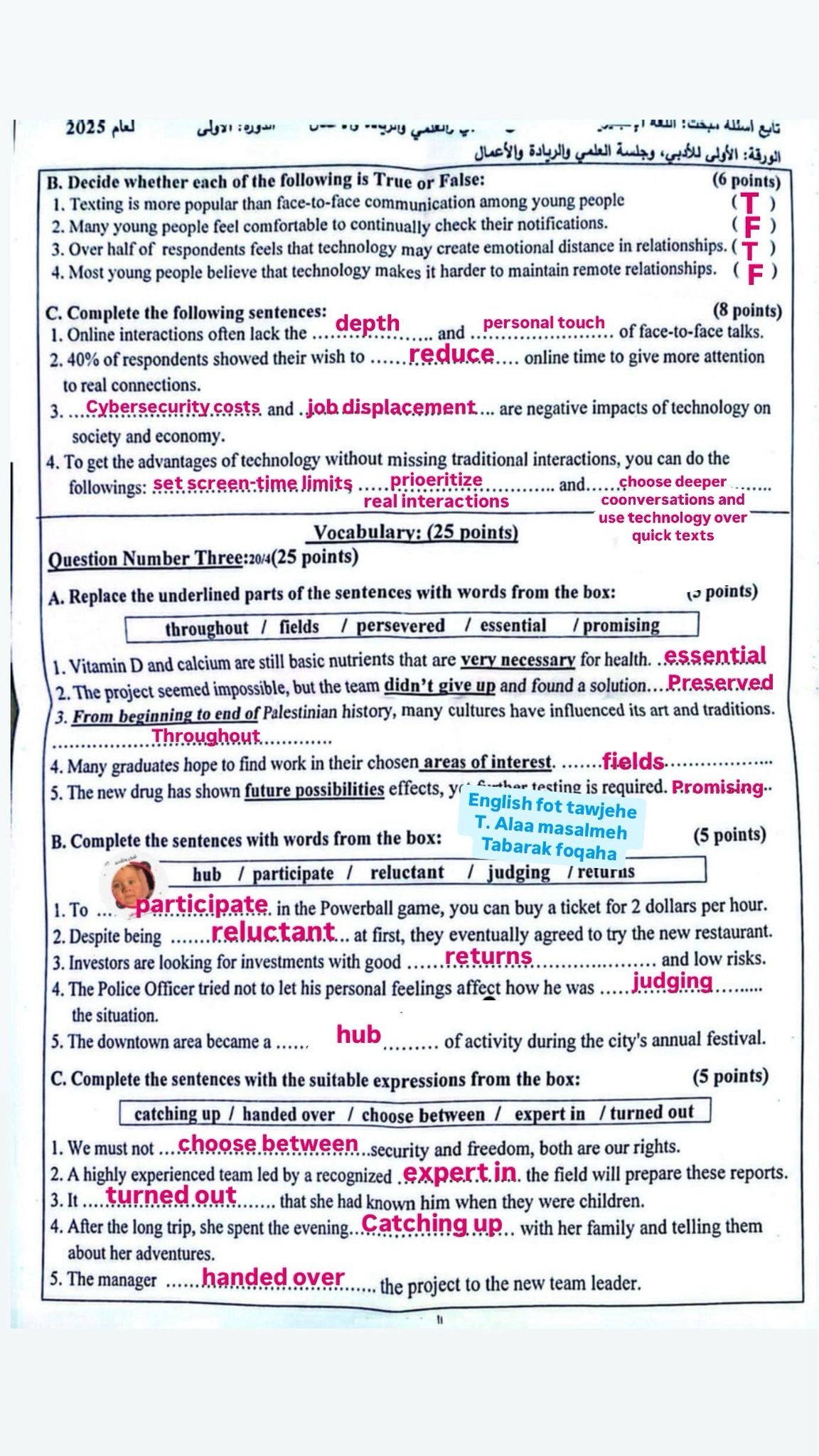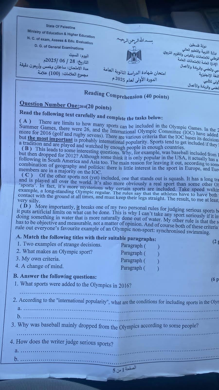 بالصور: محدث إجابات امتحان اللغة الإنجليزية 2025 توجيهي فلسطين