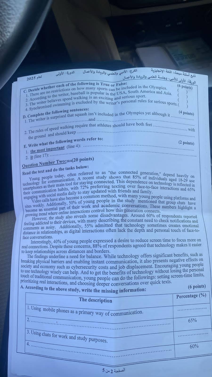 إجابات امتحان اللغة الإنجليزية 2025 توجيهي فلسطين - حيث توجه الآلاف من طلبة الثانوية العامة في الضفة الغربية، و القدس ، والمتواجدين بالخارج، صباح السبت، 28 يونيو 2025، لتقديم امتحان اللغة الإنجليزية.