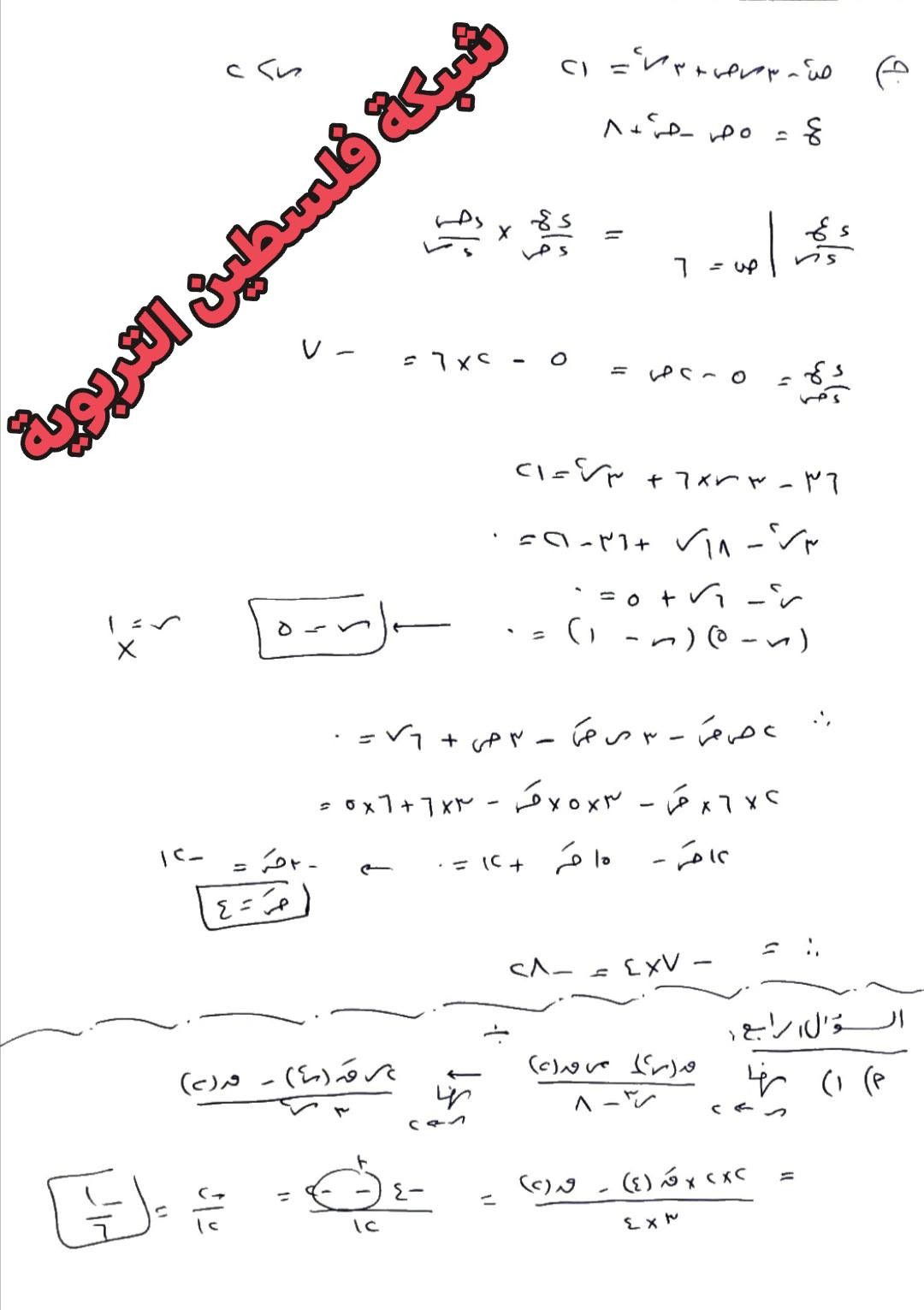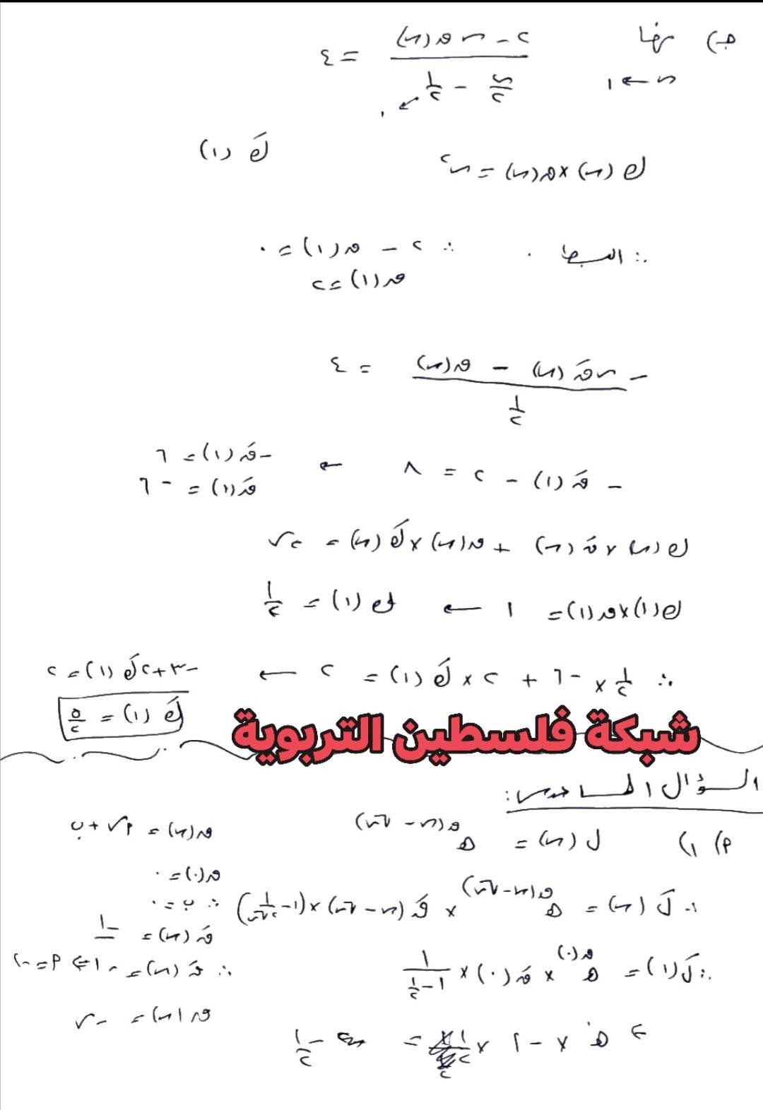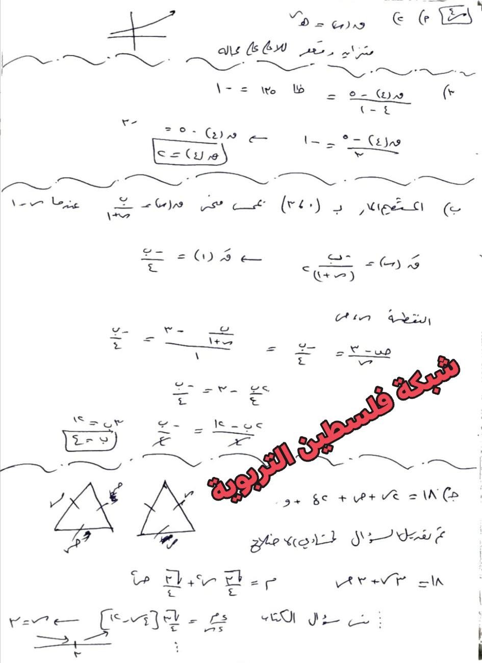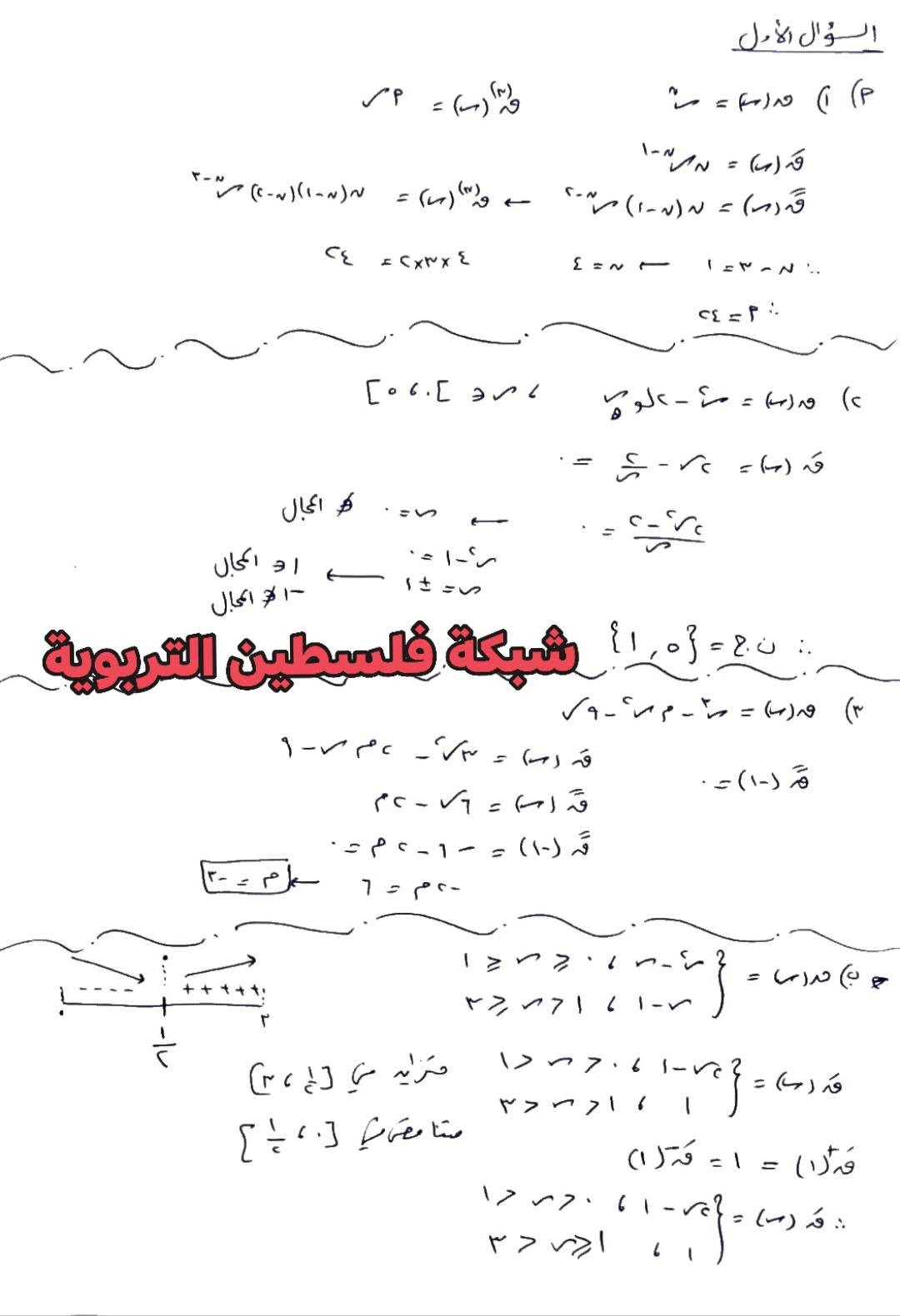 إجابات امتحان الرياضيات توجيهي 2025 في فلسطين الفرع العلمي: "بالصور" ((أسئلة الامتحان بالأسفل))