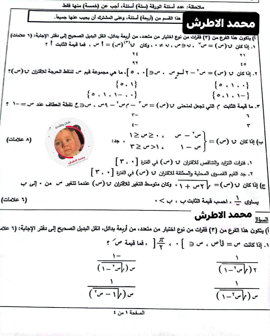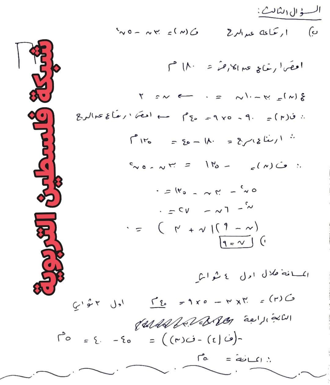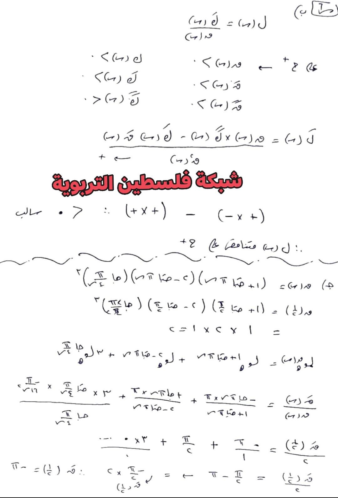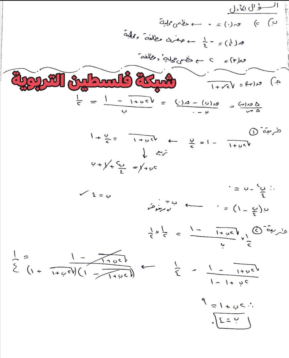 إجابات امتحان الرياضيات توجيهي 2025 في فلسطين الفرع العلمي: "بالصور" ((أسئلة الامتحان بالأسفل))