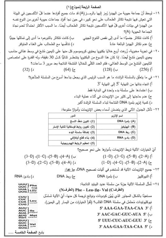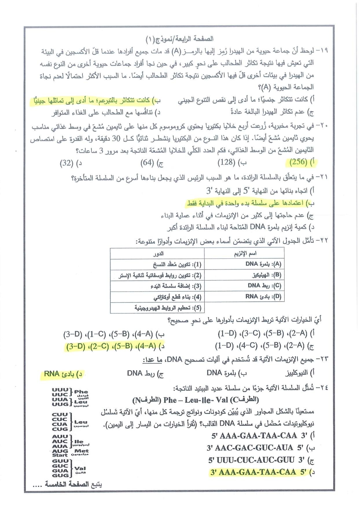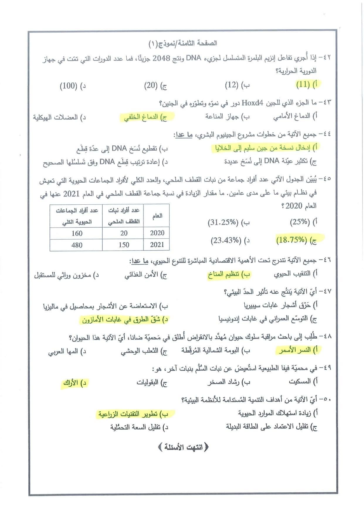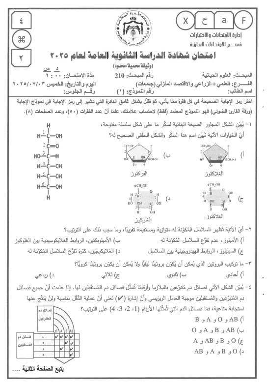 بالصور: إجابات امتحان الأحياء للفرع العلمي في الأردن