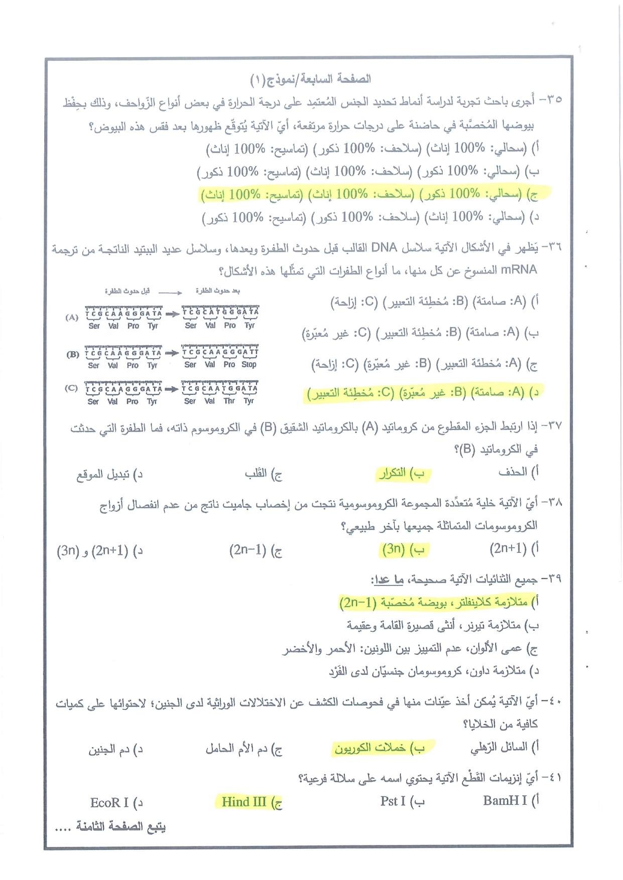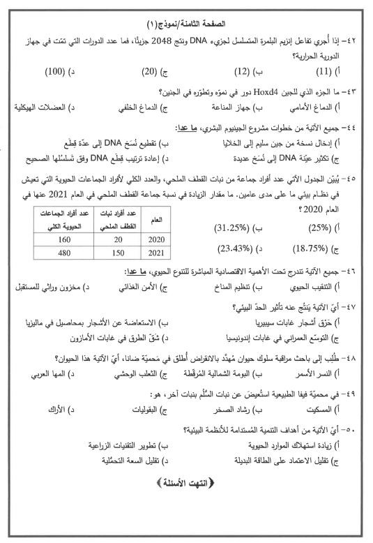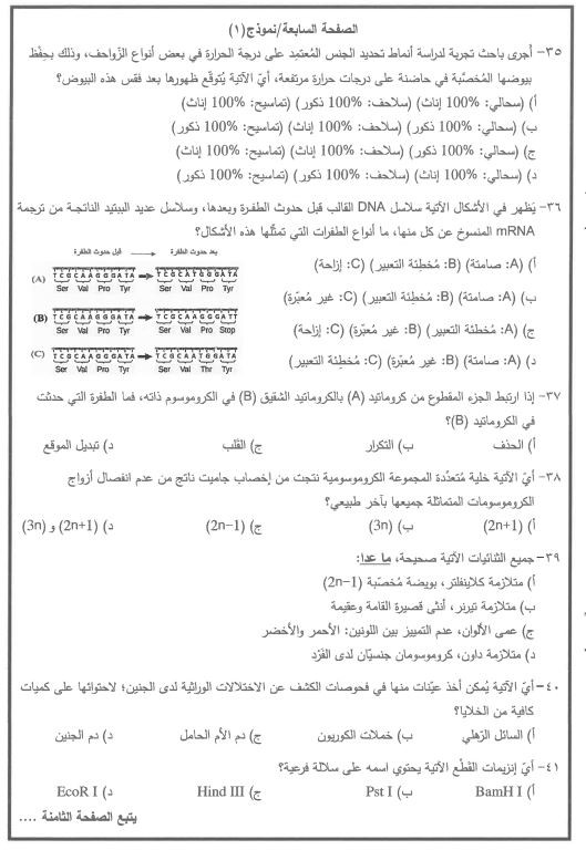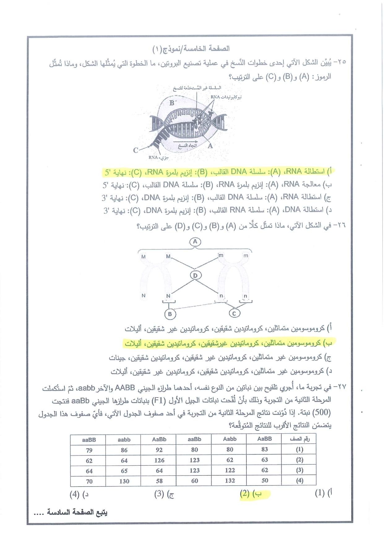 بالصور: إجابات امتحان الأحياء للفرع العلمي في الأردن