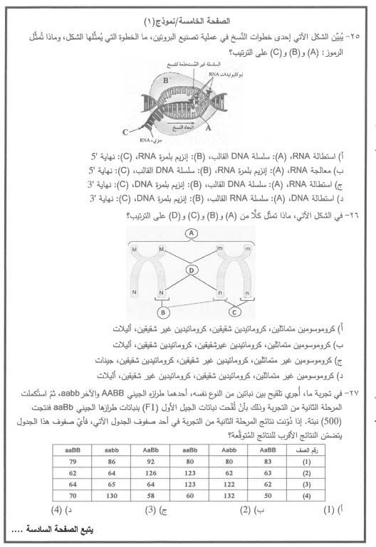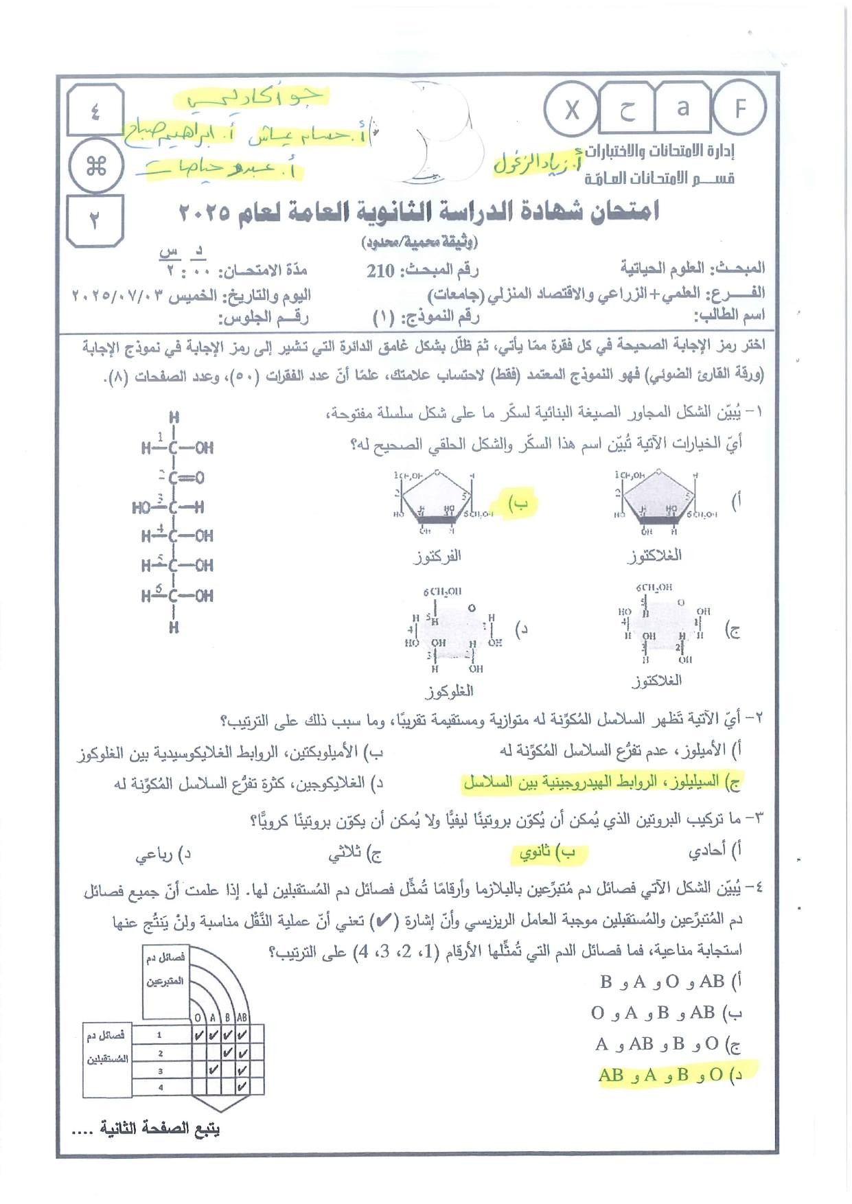 إجابات امتحان العلوم الحياتية 2025 العلمي: