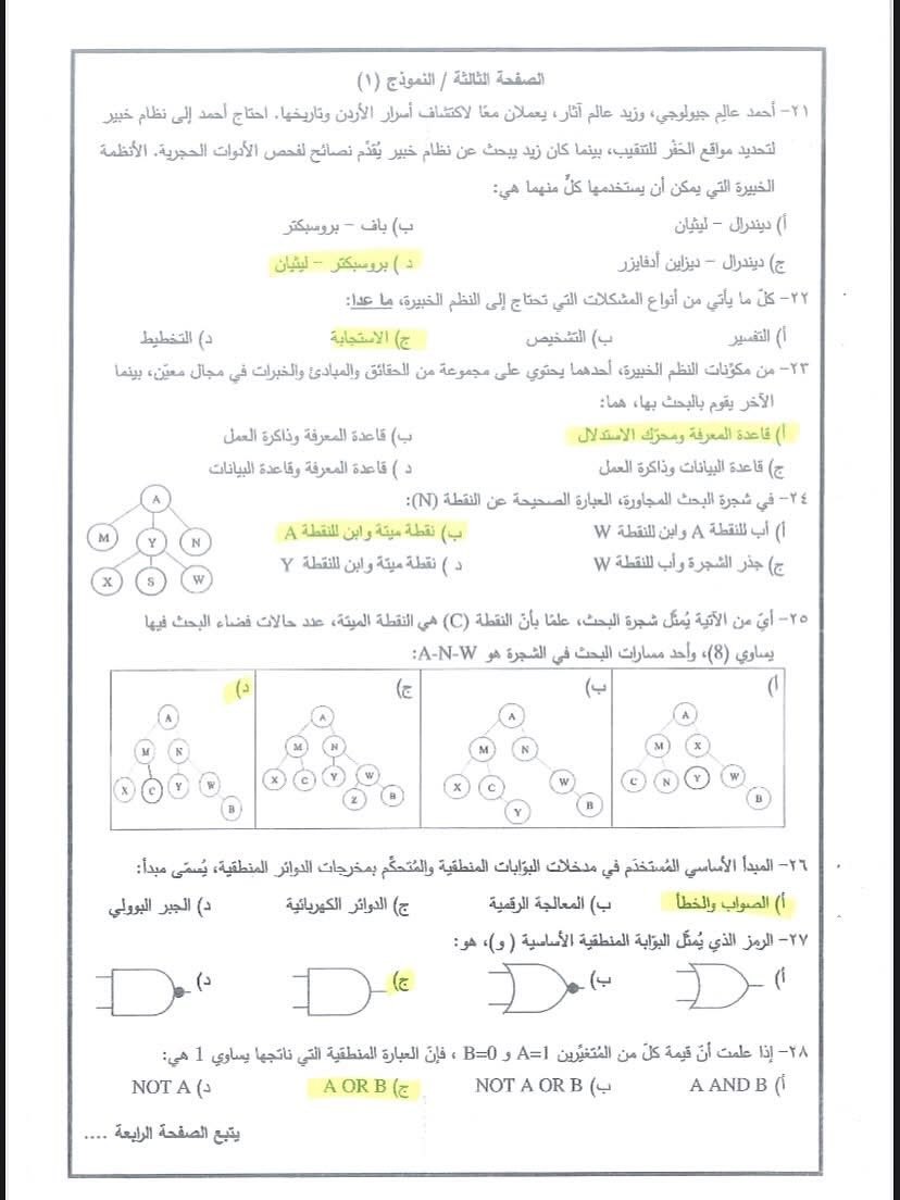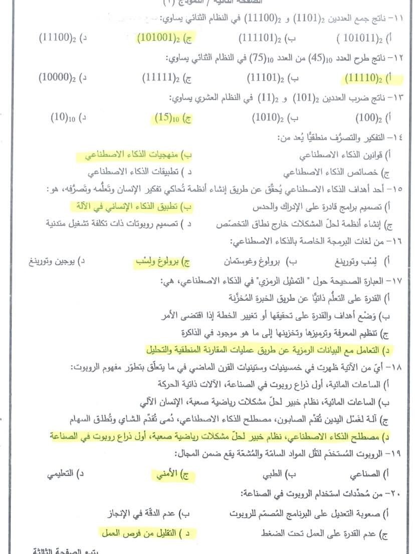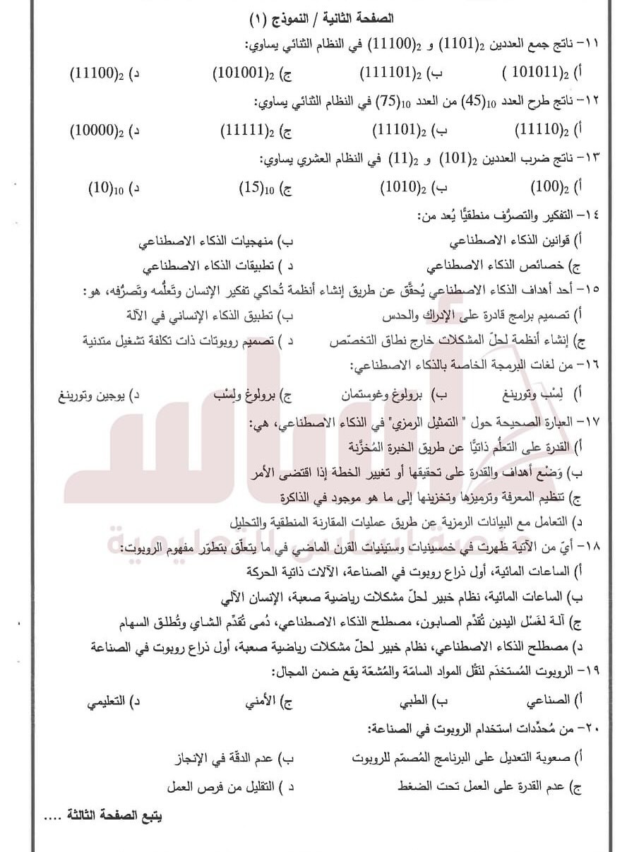 وسيتقدم للامتحان في جلسته الثانية في مبحث علوم الحاسوب (163.629) مشتركا ومشتركة في ورقة امتحانية موحدة لكافة فروع التعليم الأكاديمي والمهني.