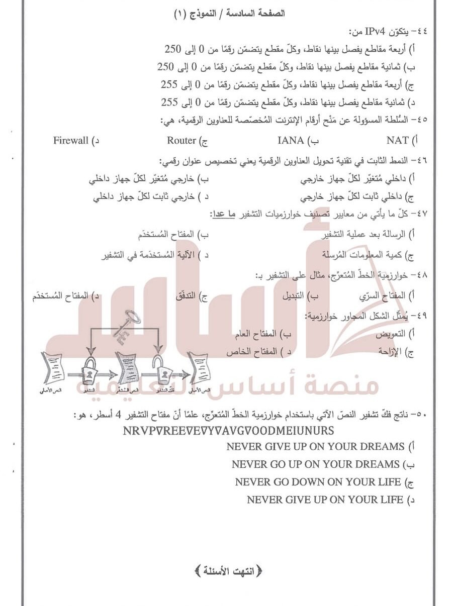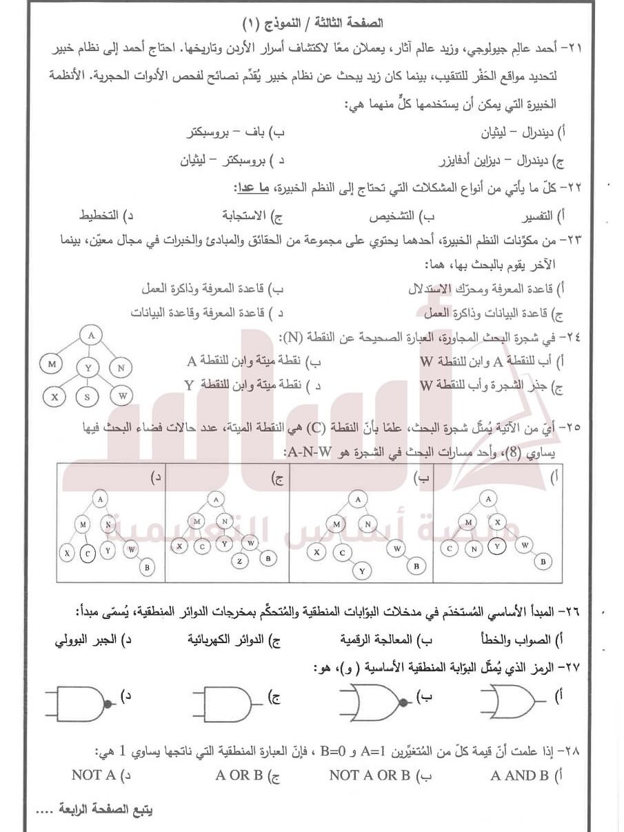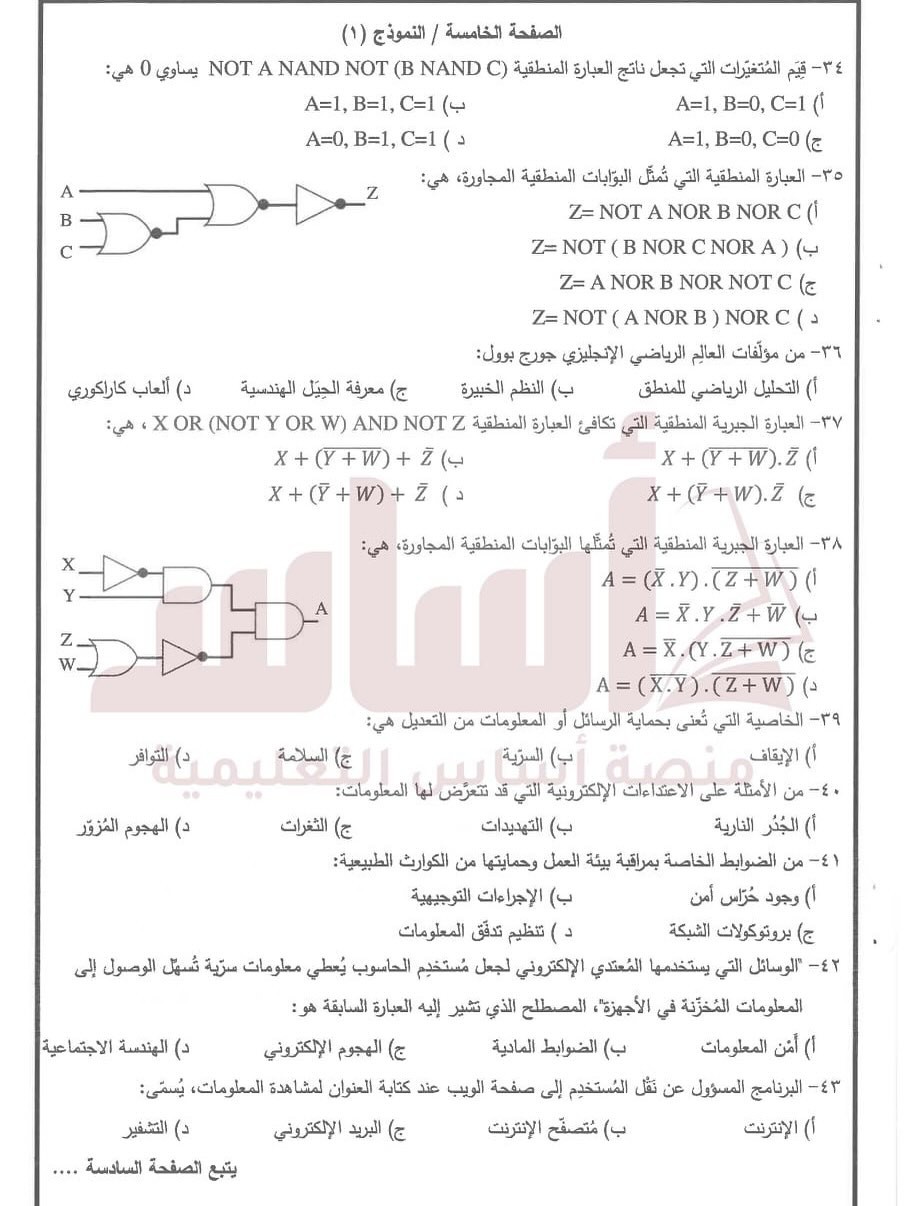وسيتقدم للامتحان في جلسته الثانية في مبحث علوم الحاسوب (163.629) مشتركا ومشتركة في ورقة امتحانية موحدة لكافة فروع التعليم الأكاديمي والمهني.