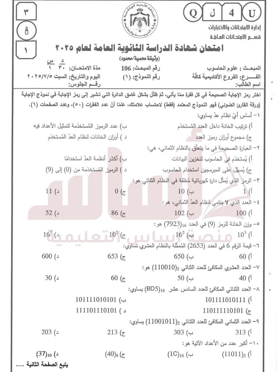 إجابات امتحان الحاسوب 2025 – حيث يبحث الكثير من طلاب وطالبات التوجيهي في الأردن حالياً عن إجابات امتحان علوم الحاسوب وذلك مع بدء الامتحان صباح اليوم