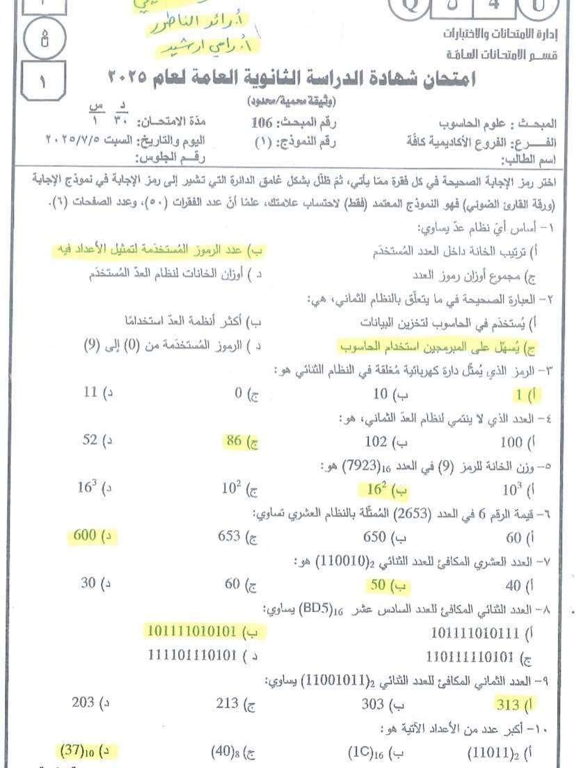 وخلال المقال السابق نكون متابعي وكالة سوا الإخبارية قد نشرنا لكم في هذا المقال كل ما تحتاجونه للوصول إلى اجابات امتحان الحاسوب 2025 ، والتي يبحث عنها أكثر من 163 طالب من مرحلة الثانوية العامة.
