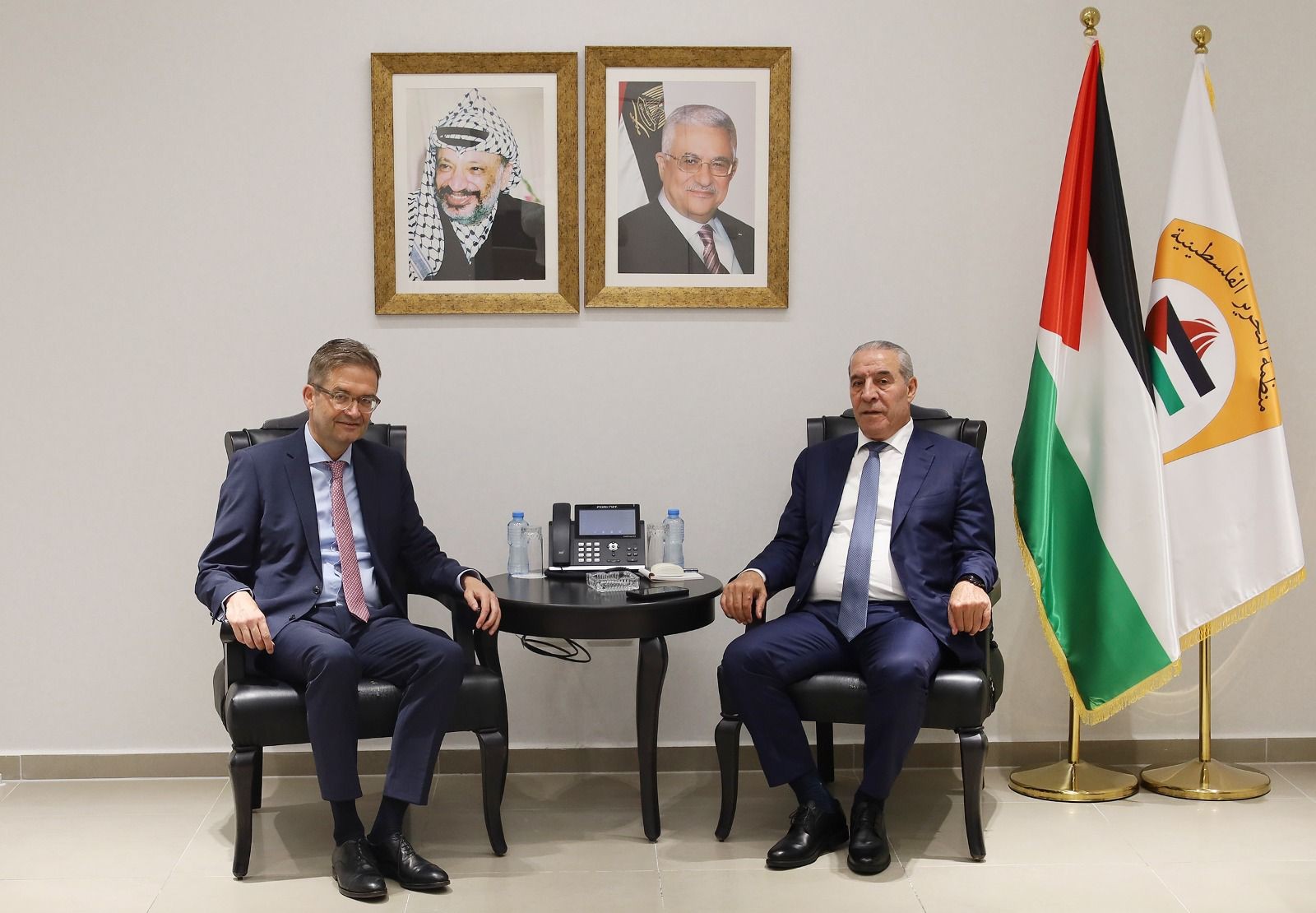 التقى نائب رئيس دولة فلسطين، نائب رئيس اللجنة التنفيذية لمنظمة التحرير الفلسطينية، حسين الشيخ ، اليوم الاثنين، رئيس البعثة الألمانية لدى فلسطين أوليفر أوفتشا، لمناسبة انتهاء مهامه الرسمية، وذلك بحضور رئيس الشؤون السياسية في المكتب التمثيلي الألماني كريستيان كوسترز.