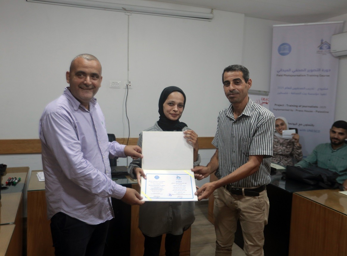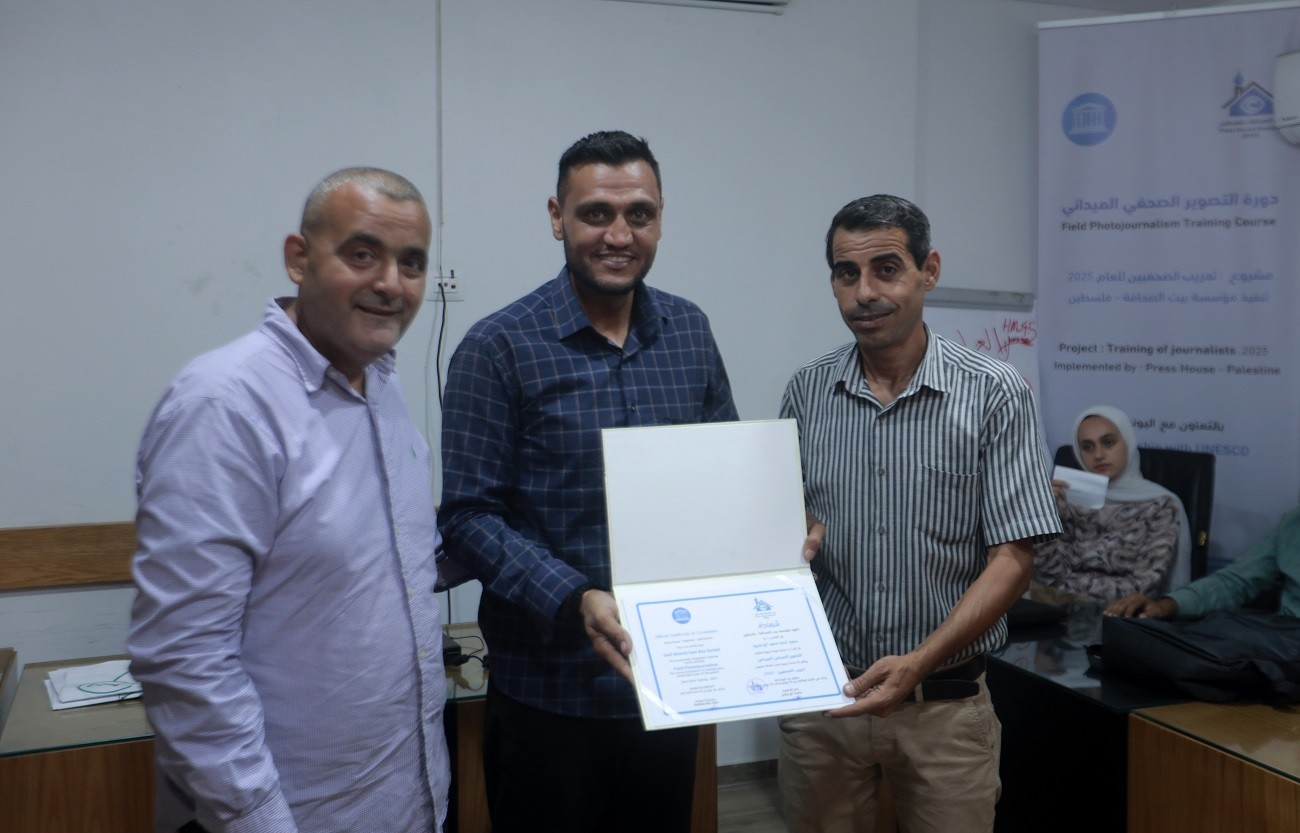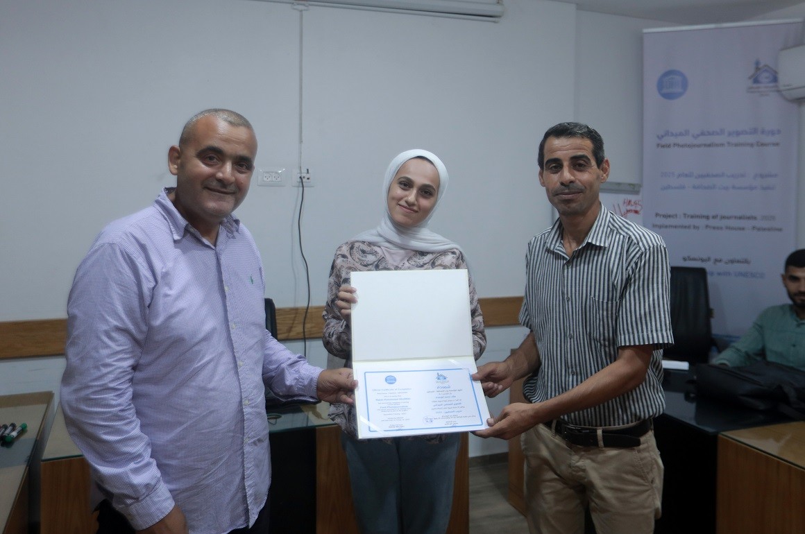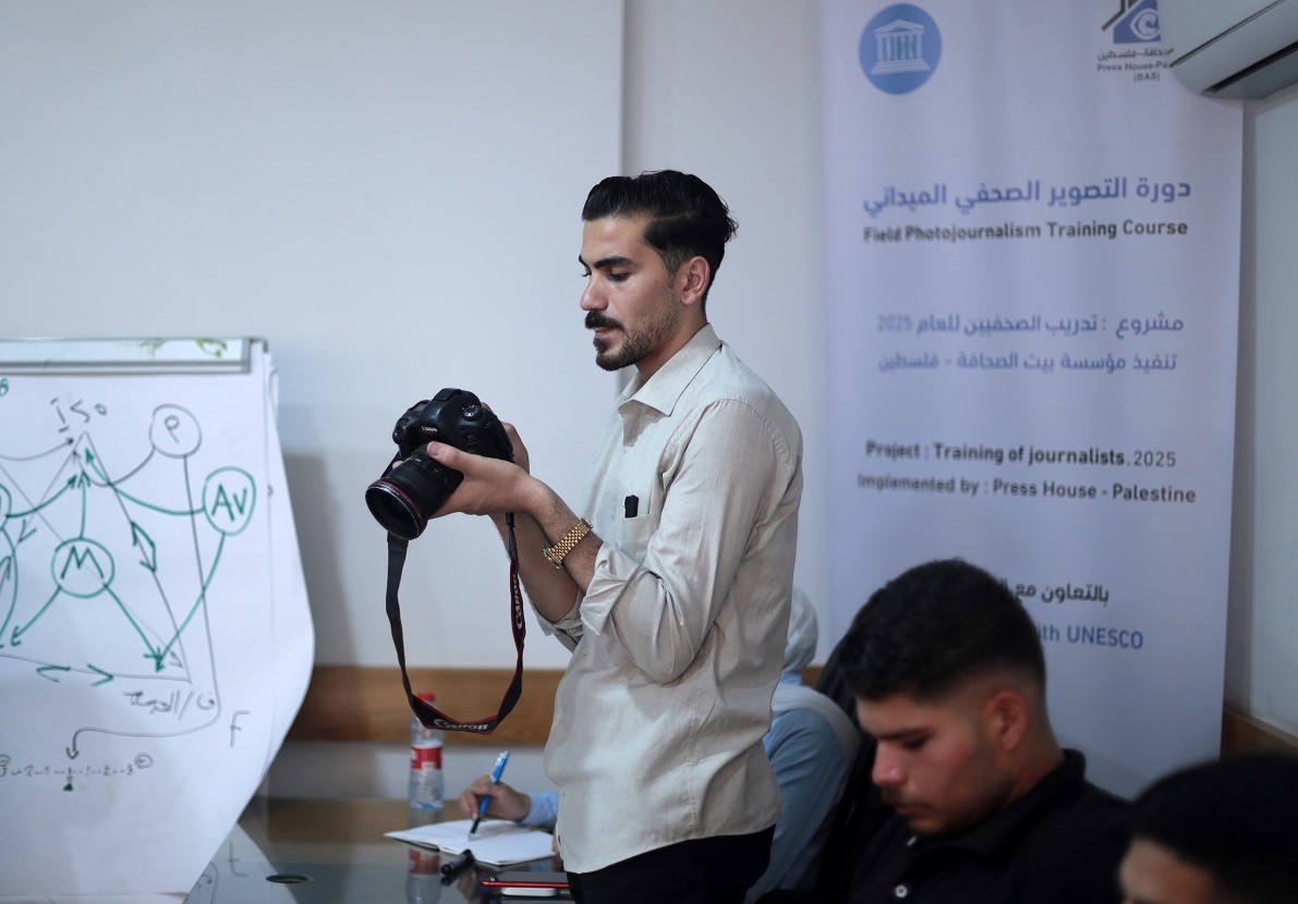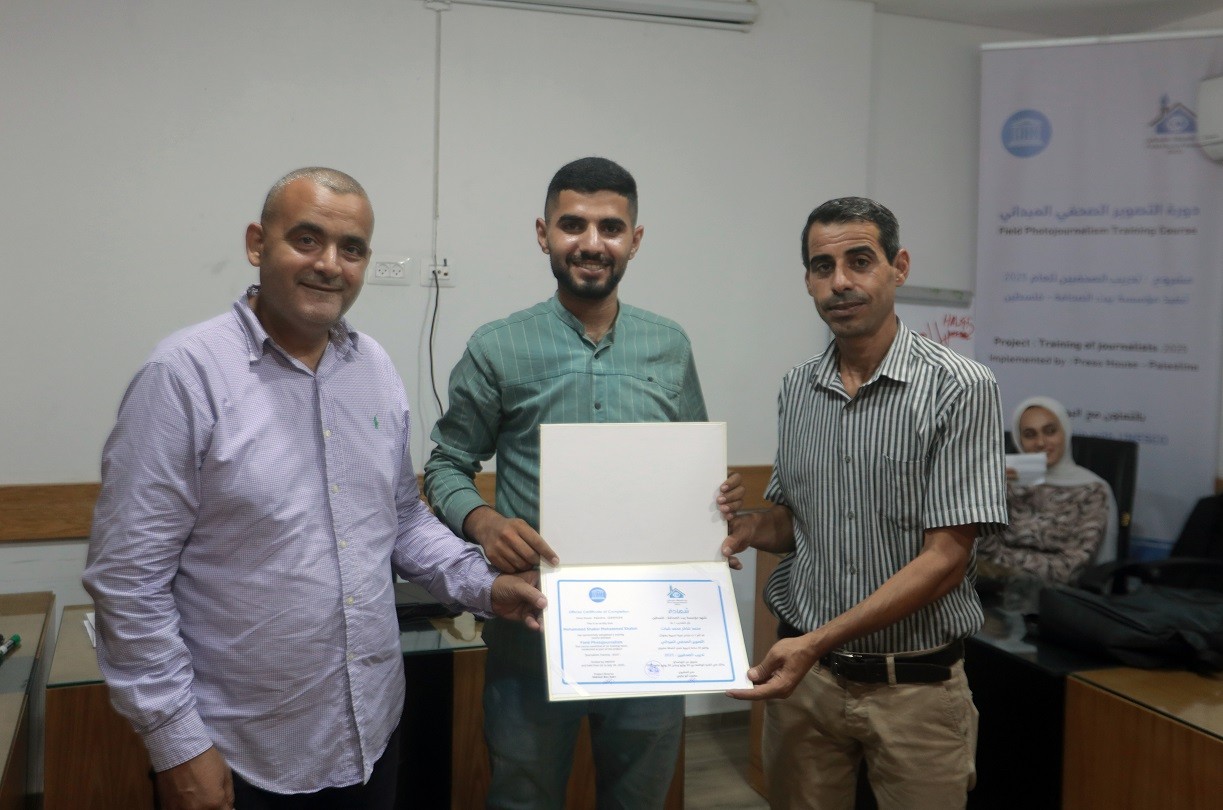 اختتم بيت الصحافة – فلسطين ، الاثنين 28 يوليو / تموز 2025 ، دورة تدريبية بعنوان " التصوير الصحفي الميداني" ، وذلك ضمن مشروع "تدريب الصحفيين 2025" الممول من منظمة اليونسكو.