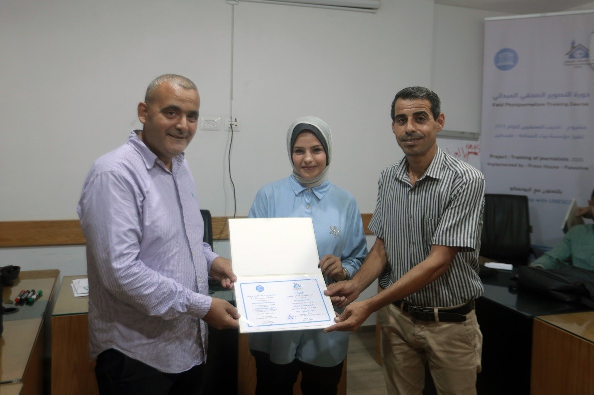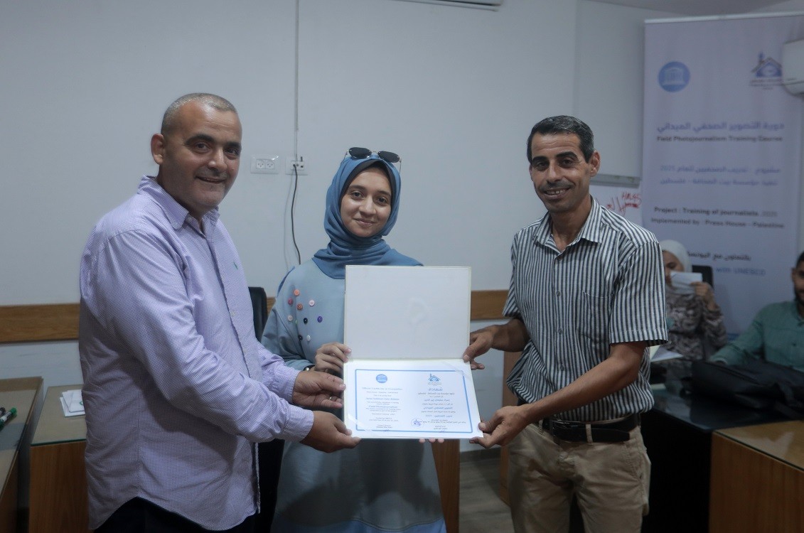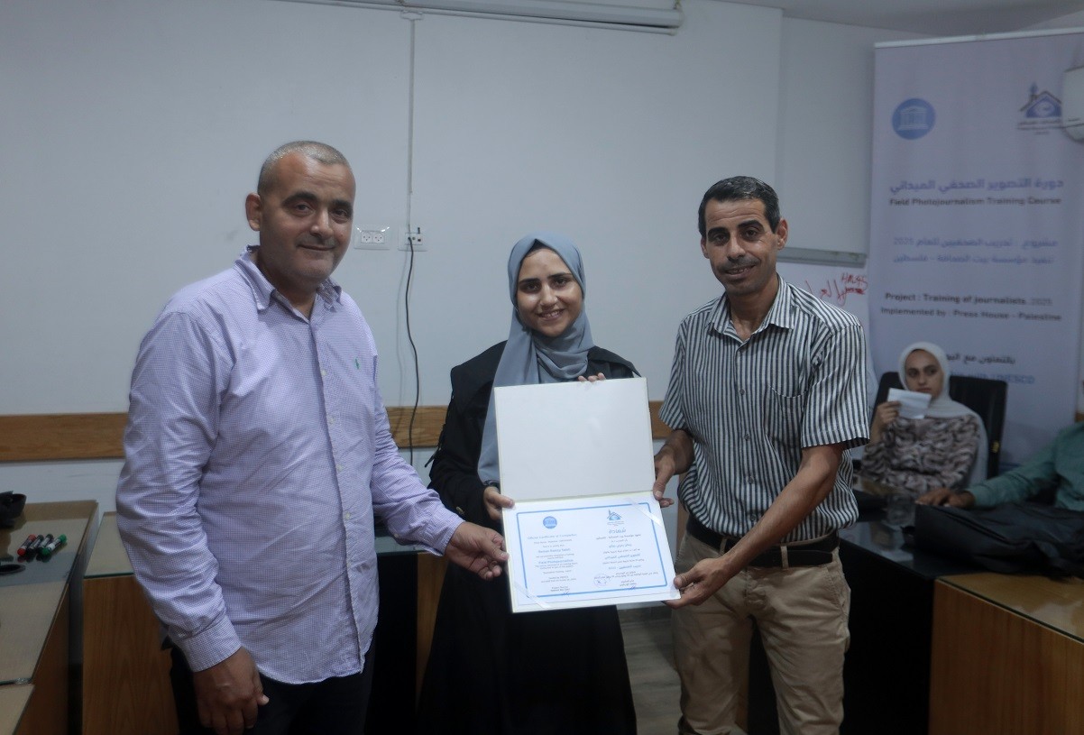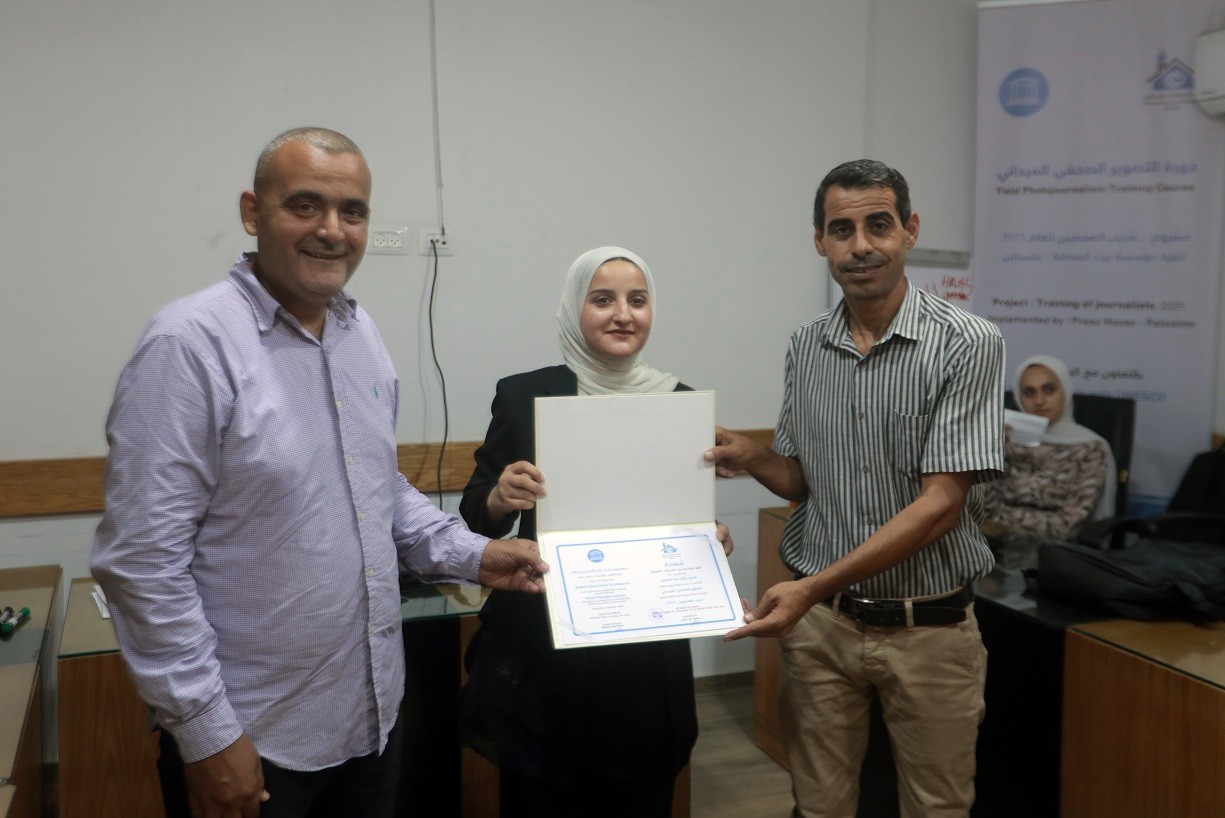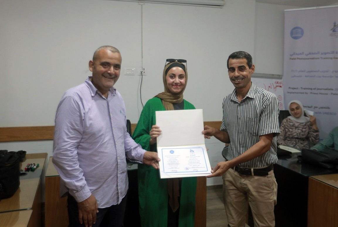 اختتم بيت الصحافة – فلسطين ، الاثنين 28 يوليو / تموز 2025 ، دورة تدريبية بعنوان " التصوير الصحفي الميداني" ، وذلك ضمن مشروع "تدريب الصحفيين 2025" الممول من منظمة اليونسكو.