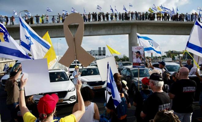بالفيديو والصور: احتجاجات واسعة وإضراب في إسرائيل للمطالبة بوقف حرب غزة وإعادة الأسرى