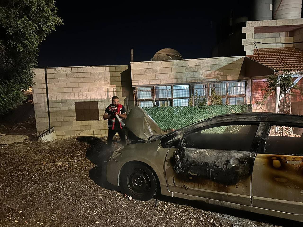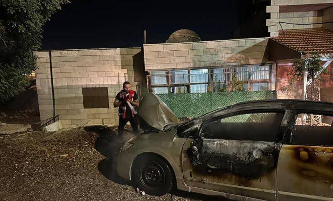 بالصور: مستوطنون يحرقون مركبة في بيتين شرق رام الله