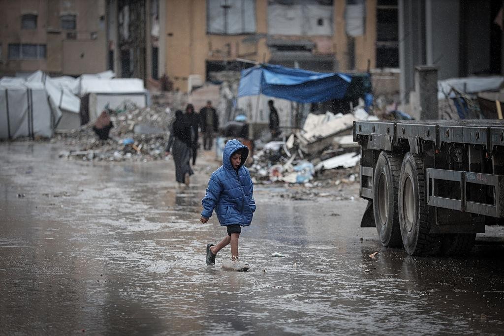 طفل في قطاع غزة خلال تساقط أمطار المنخفض الجوي