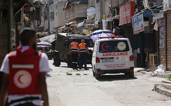 وقال إن قوات الاحتلال منعت طواقمه من الوصول إلى مصاب رابع وصفت حالته بالحرجة، ولاحقا أعلن عن تعامله مع شهيد و4 إصابات.