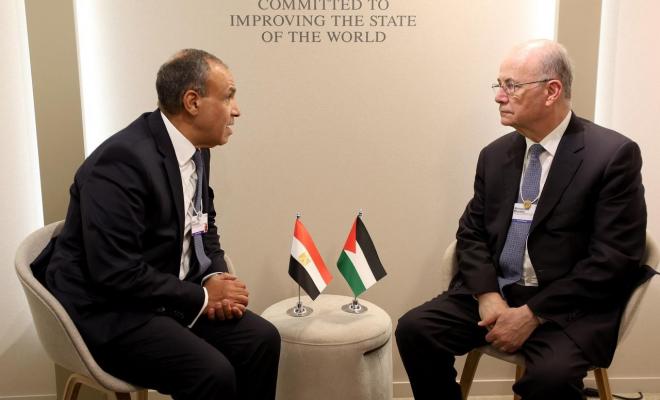بحث رئيس الوزراء الفلسطيني محمد مصطفى، خلال لقائه وزير الخارجية المصري بدر عبد العاطي، آخر التطورات المتعلقة بجهود تثبيت وقف إطلاق النار في قطاع غزة ، والتحركات الإقليمية والدولية لإعادة إعمار القطاع بالتنسيق مع الفاعلين والشركاء الدوليين، وذلك اليوم الأربعاء على هامش منتدى دافوس الاقتصادي، بحضور سفير دولة فلسطين لدى سويسرا والأمم المتحدة في جنيف إبراهيم خريشي.