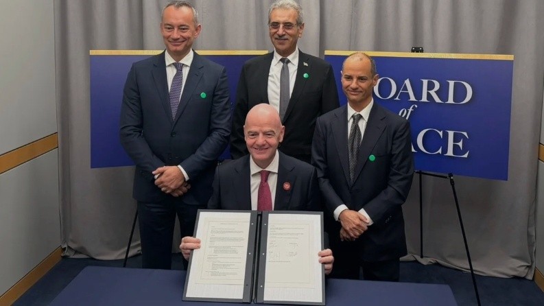 وقال رئيس الـ "فيفا" جياني إنفانتينو عقب مراسم التوقيع التي أقيمت في مقر معهد دونالد ج. ترامب للسلام بالولايات المتحدة "وقّع FIFA ومجلس السلام اليوم اتفاقية شراكة تاريخية، والتي سوف تُعزّز التمويل في كرة القدم، لغرض المساعدة في عملية التعافي في أكثر أماكن النزاع احتياجاً."