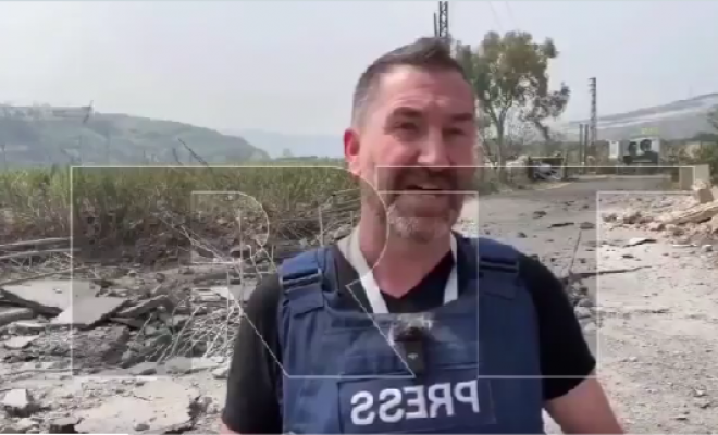 بالفيديو: لحظة سقوط صاروخ إسرائيلي بجانب صحفييْن جنوب لبنان