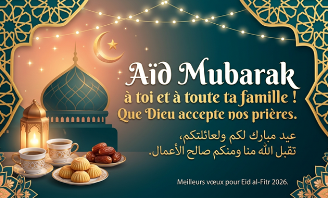 عبارات تهنئة عيد الفطر بالفرنسية 2026 (للأصدقاء والعائلة)