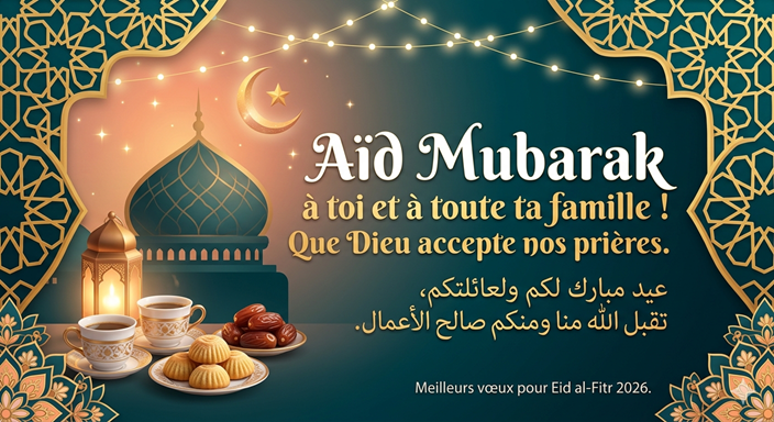 رسائل تهنئة عيد الفطر بالفرنسية 2026 (رسمية)