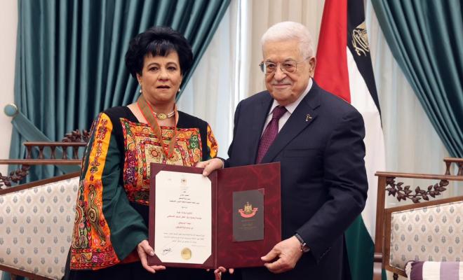 الرئيس عباس يمنح جمانة عودة نجمة الاستحقاق من وسام دولة فلسطين