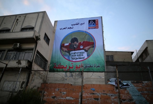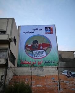 غزة /سوا/إيهاب أبو دياب/ افتتح عبد السلام هنية عضو المجلس الأعلى للشباب والرياضة، رئيس مؤسسة أمواج الإعلامية الرياضية، جدارية النجم المصري محمد أبو تريكة لاعب الأهلي المصري سابقا؛ في ملعب اليرموك بمدينة غزة اليوم الأربعاء.