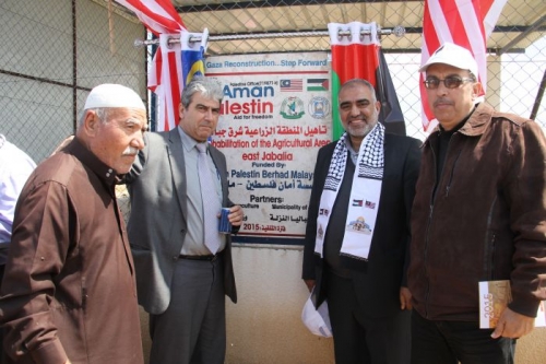 غزة / سوا / احتفلت وزارة الزراعة، ومؤسسة امان فلسطين ماليزيا، بالتعاون مع بلدية جباليا النزلة، باختتام تنفيذ مشاريع تأهيل المنطقة الزراعية شرق جباليا، وذلك خلال حفل اقيم في المنطقة الزراعية شرق جباليا، شارع خور زنون".